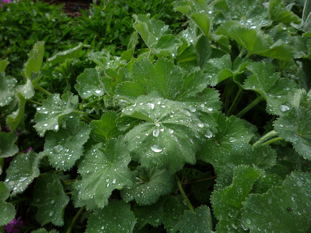 The lady's mantel always looks good after a rain with the water droplets on its leaves. It is a spring favourite with it's lushness.